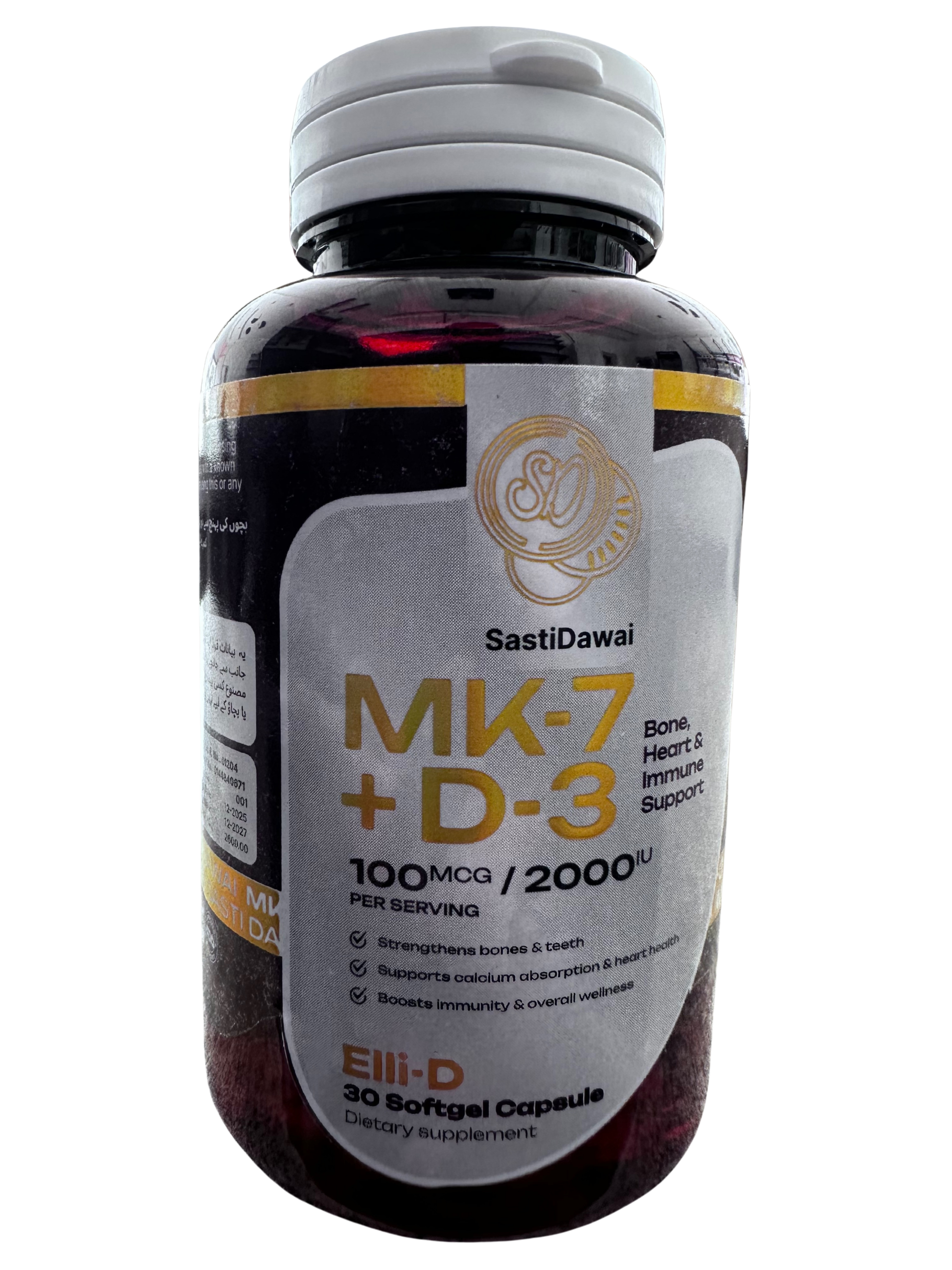 Vitamin D3 (Cholecalciferol) helps the body absorb calcium effectively, while Vitamin K2 (MK-7) ensures calcium is directed to the bones — not arteries — making this a powerful and balanced combination for long-term health.